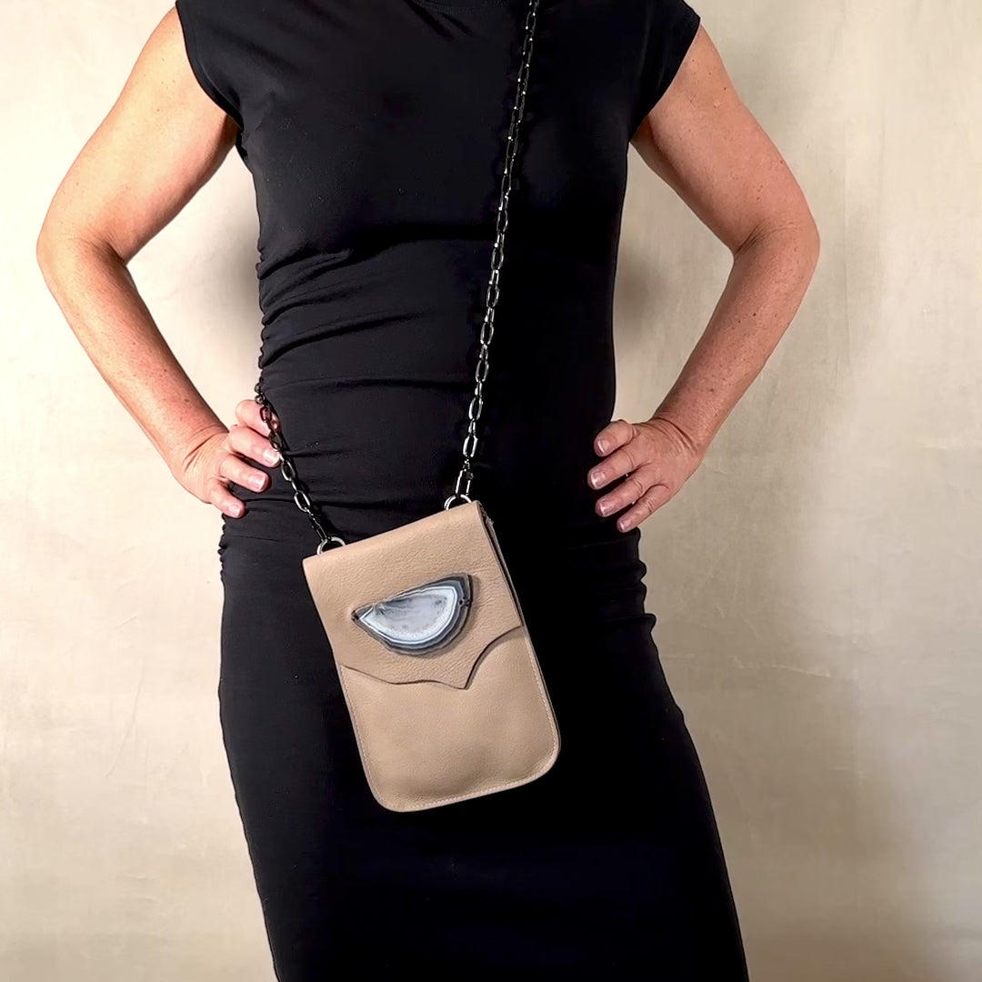 Meet the Paulina, your ultimate festival and night-out essential. Crafted in smooth burgundy Italian leather and adorned with our signature agate, it’s as stylish as it is functional. The back open pocket is perfectly sized for the latest iPhone 16 Max, while the secure front pocket with magnetic closure keeps your essentials safe and easily accessible.